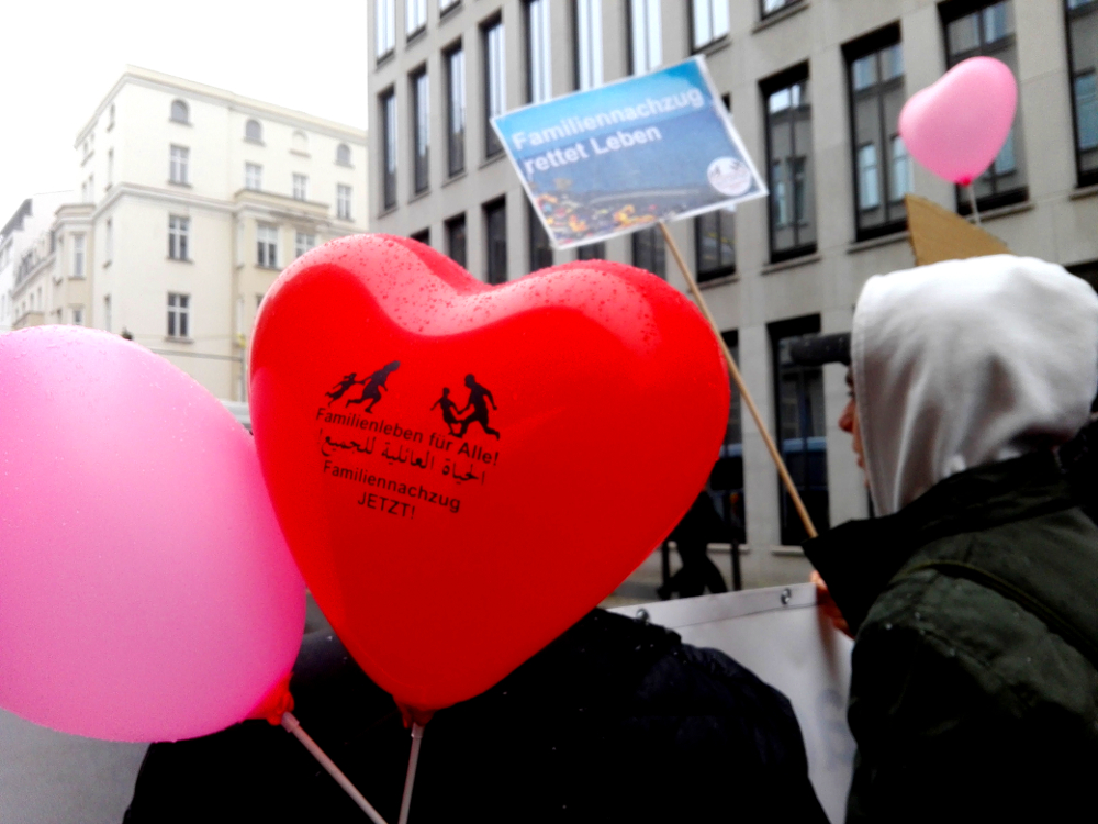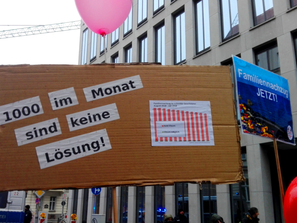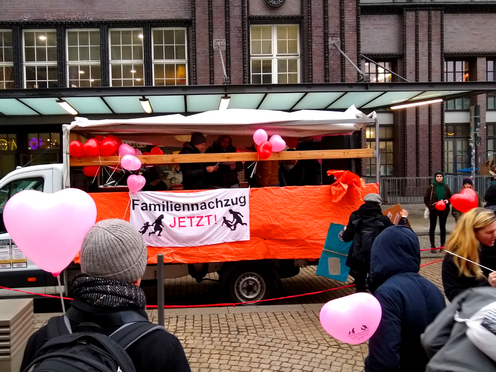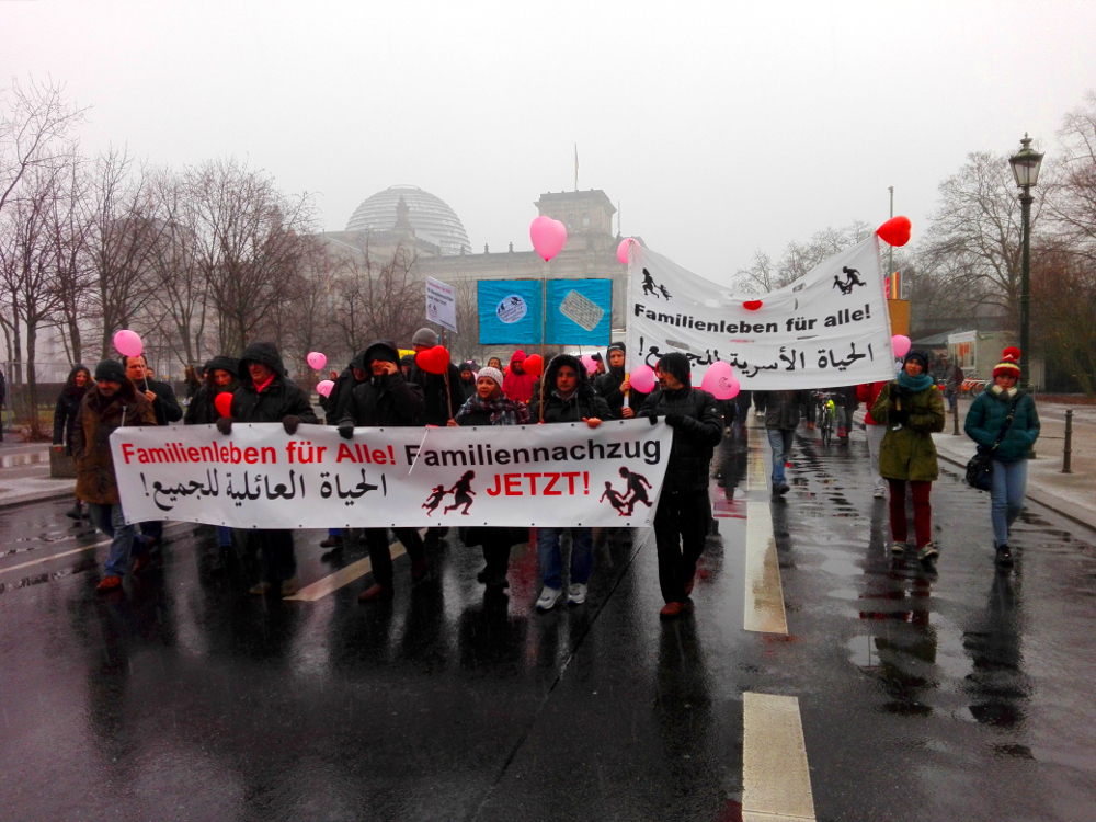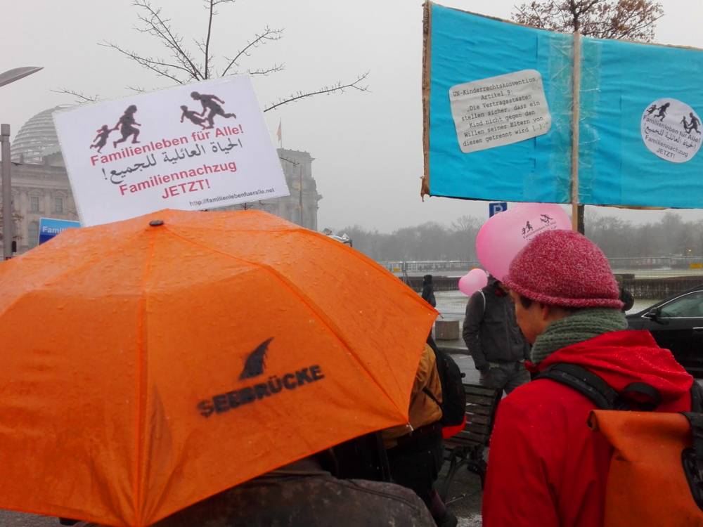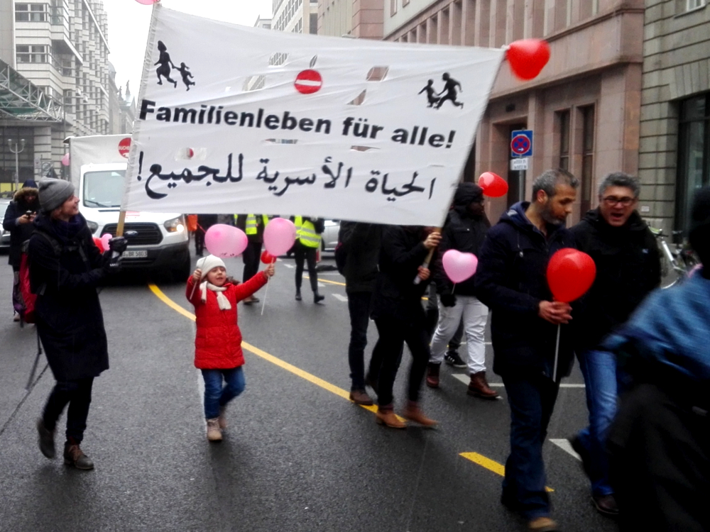 Geflüchtete, binationale Familien und Menschenrechts-Aktivist*innen fordern ein Ende von bürokratischen und gesetzlichen Blockaden von Familiennachzug.