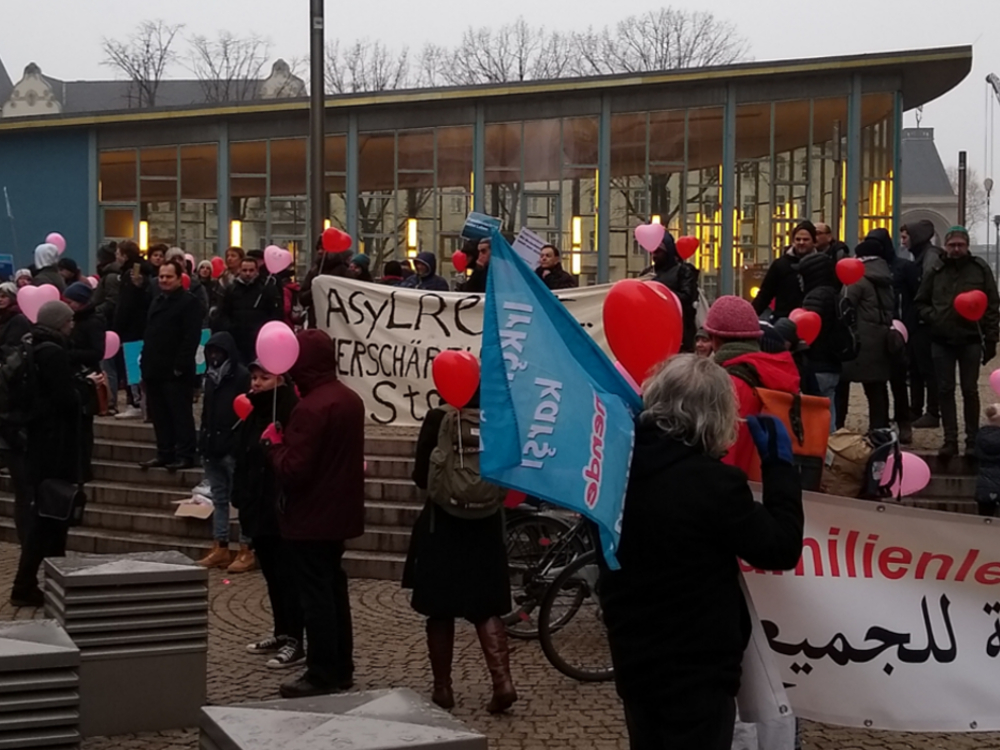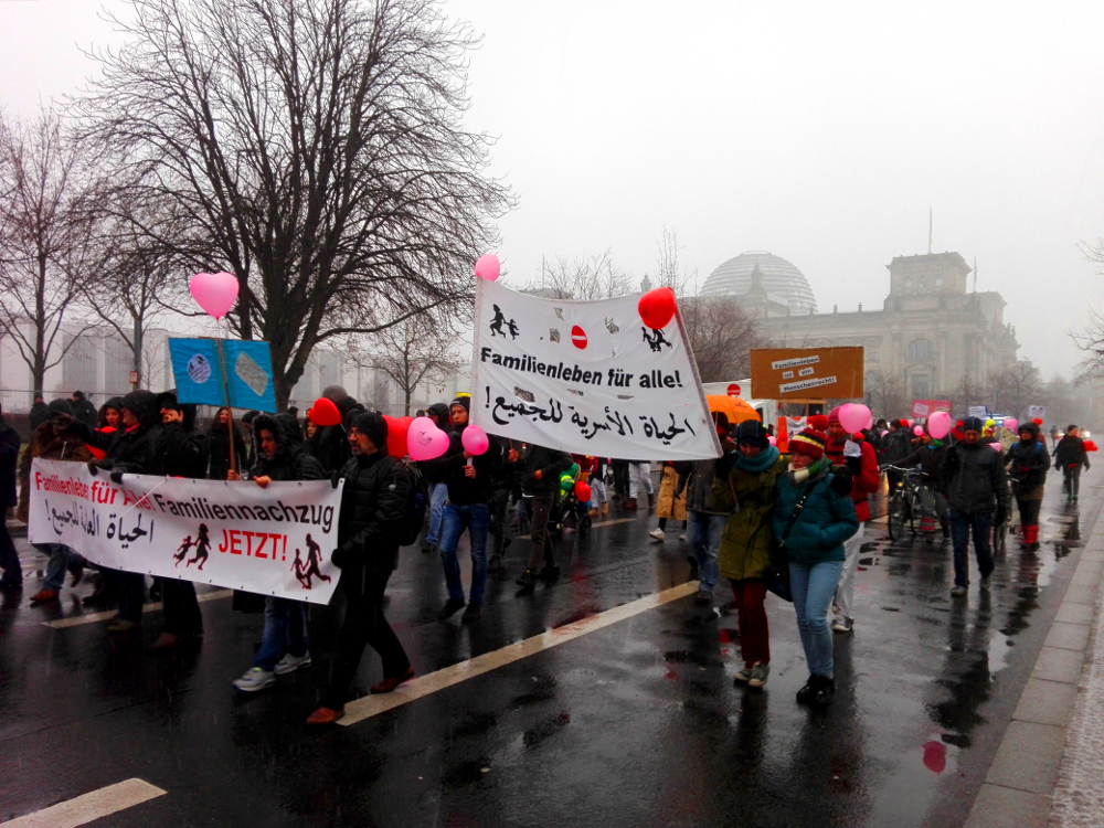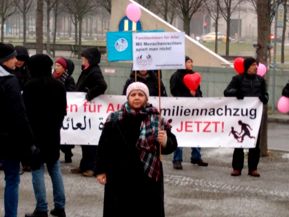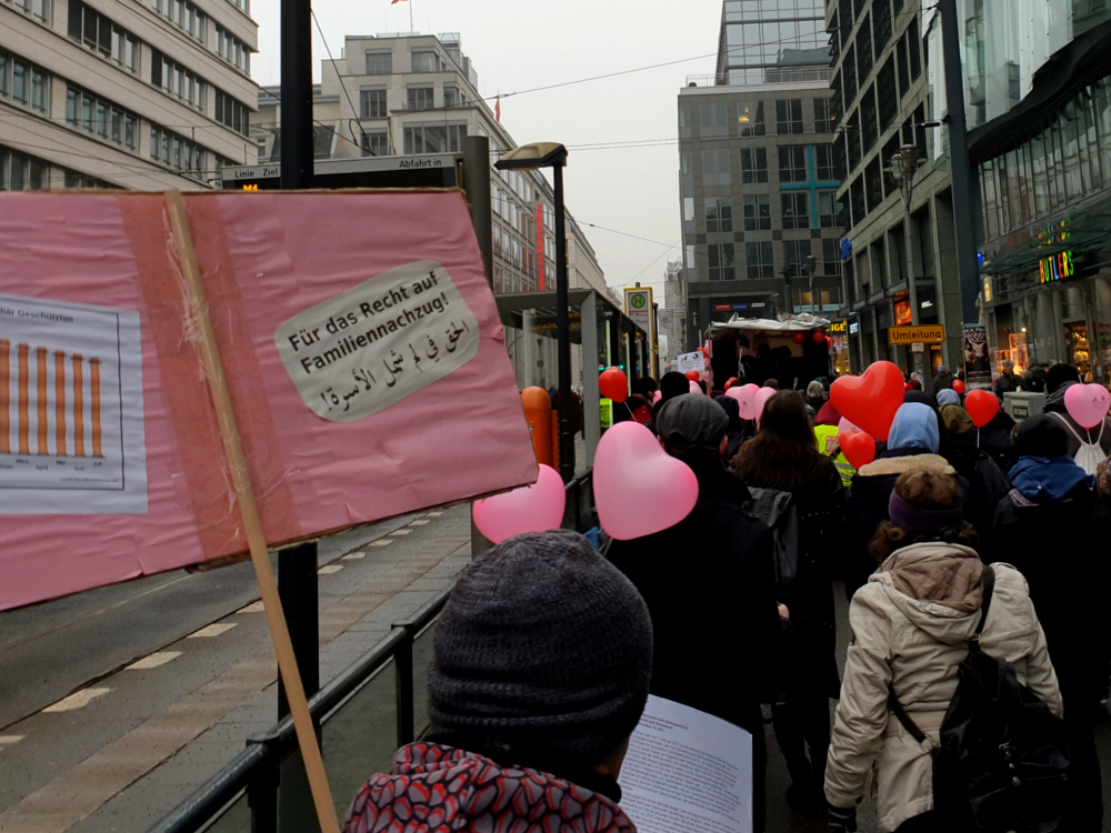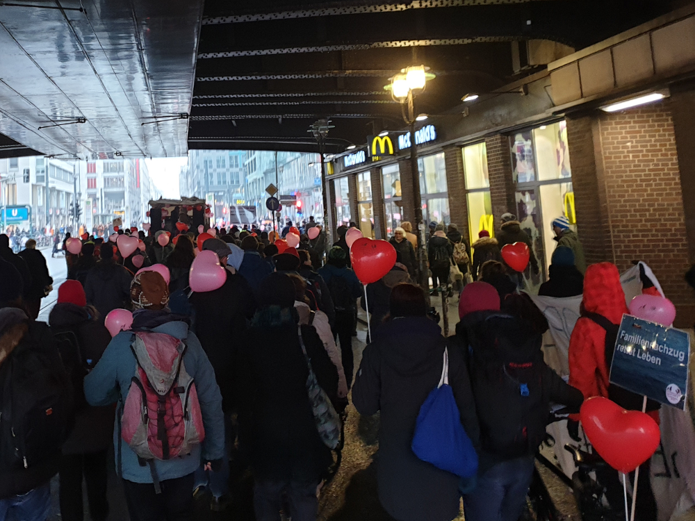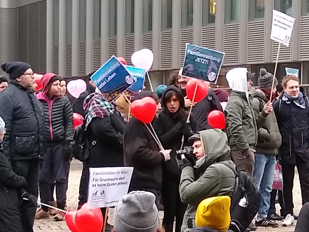 Geflüchtete, binationale Familien und Menschenrechts-Aktivist*innen fordern ein Ende von bürokratischen und gesetzlichen Blockaden von Familiennachzug.